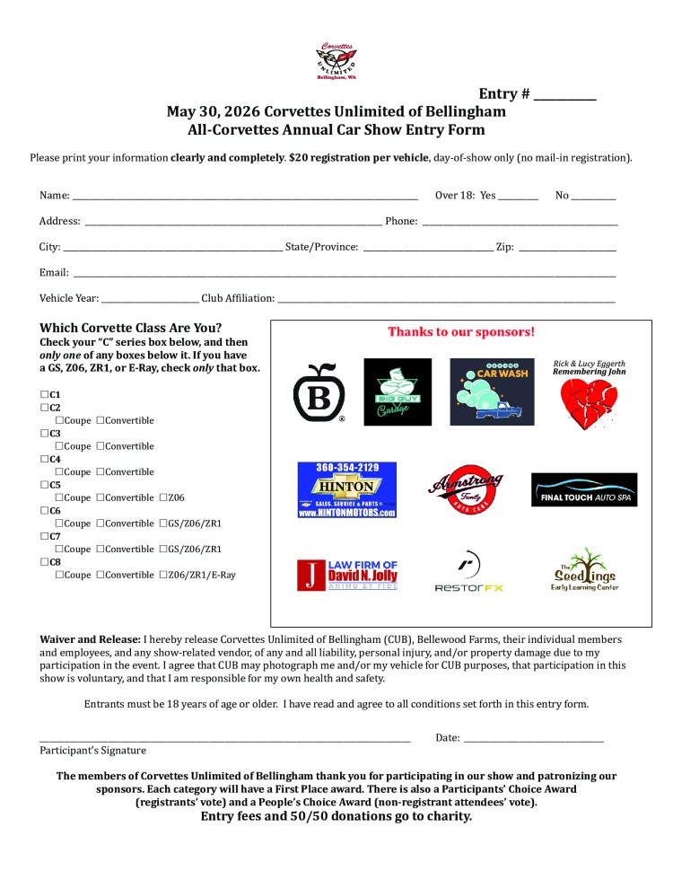 We are a Corvette club based in Bellingham, Washington. Our members participate in a number of car activities, including Show-n-Shines, Autocross, parades, dinner cruises, poker runs, and charity events. Check our Events tab or Facebook or Instagram page for details. Monthly meeting information is in our About/Join tab. We are social club and nothing is mandatory. We hope to see you!