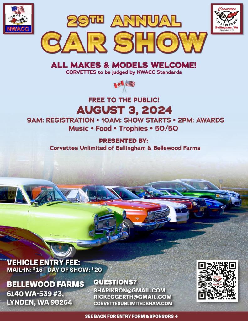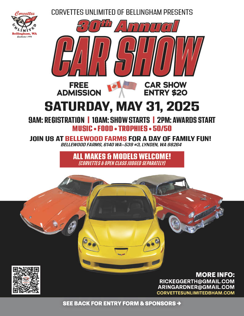 2025 Corvettes Unlimited of Bellingham car show will be on May 31st, 2025.
